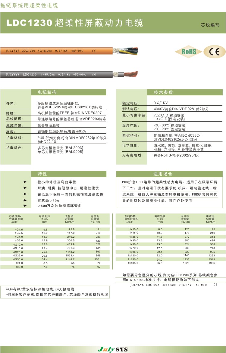 拖链系统用超柔性屏蔽动力电缆  LDC1230系列